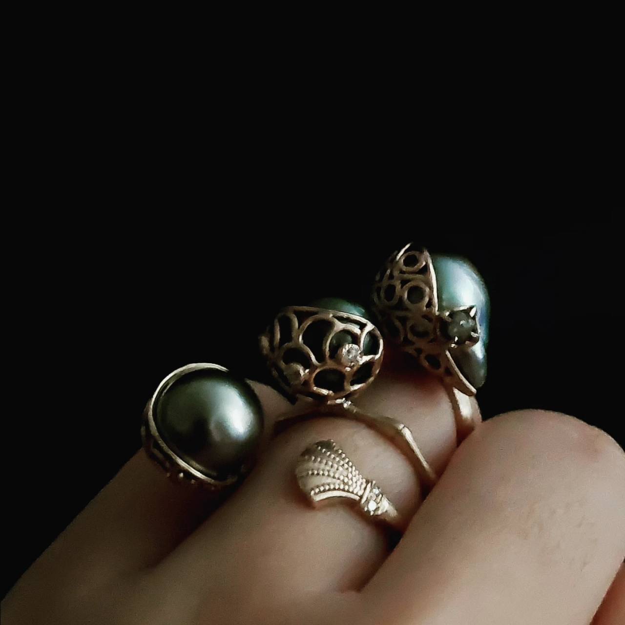 南洋バロックパールをマットゴールドで包み込み、ダイヤモンド原石を添えたリング