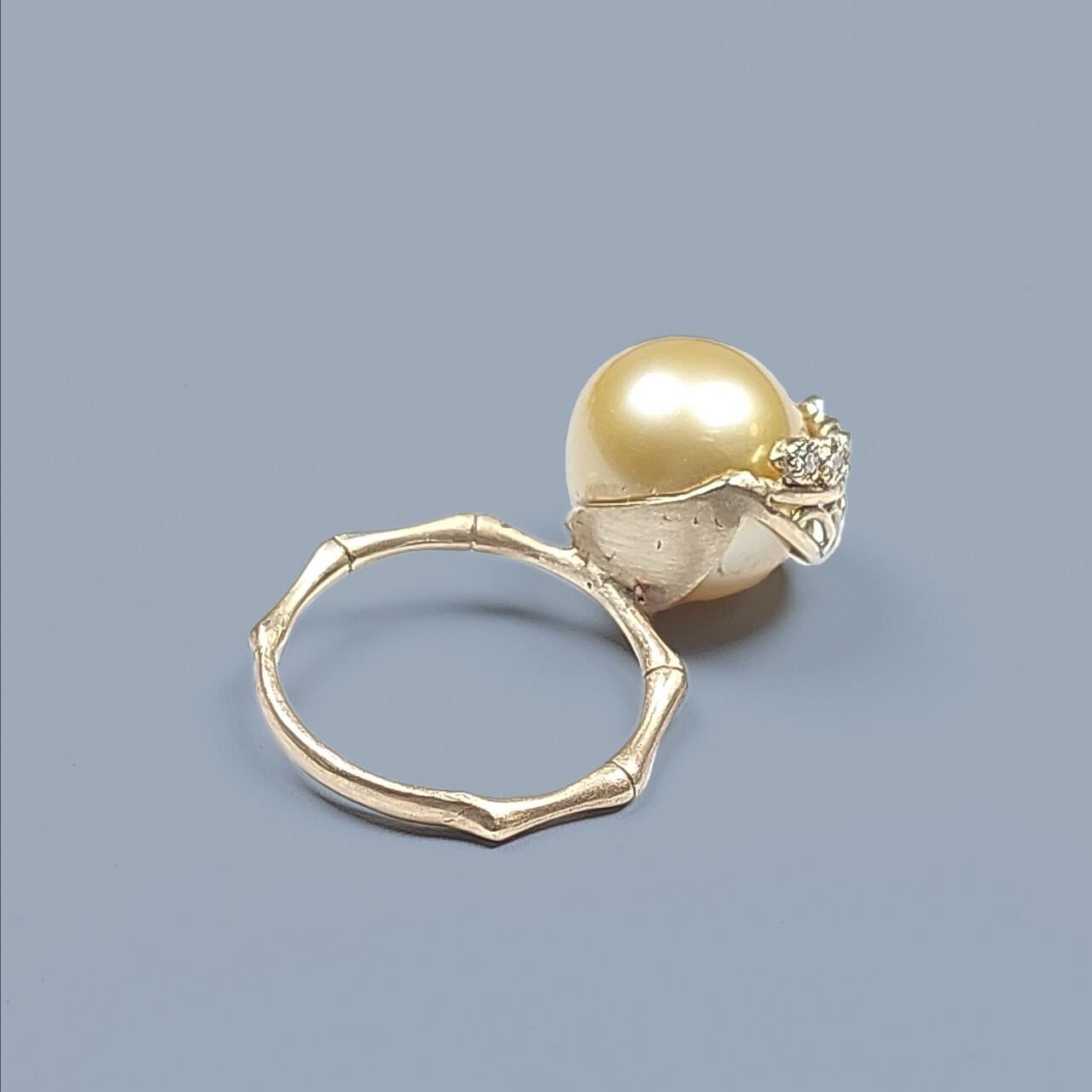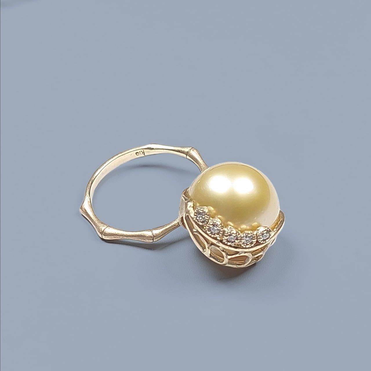 ーK10 南洋ゴールドパール 青海波透かしモチーフリングー