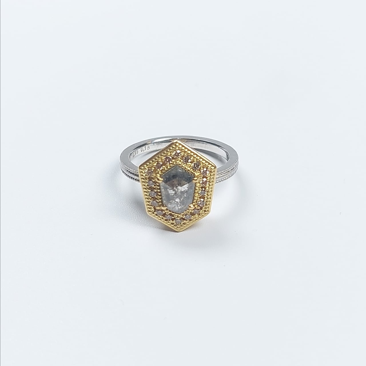 K18 PT Salt &Pepper Diamond Broun Diamond Ring