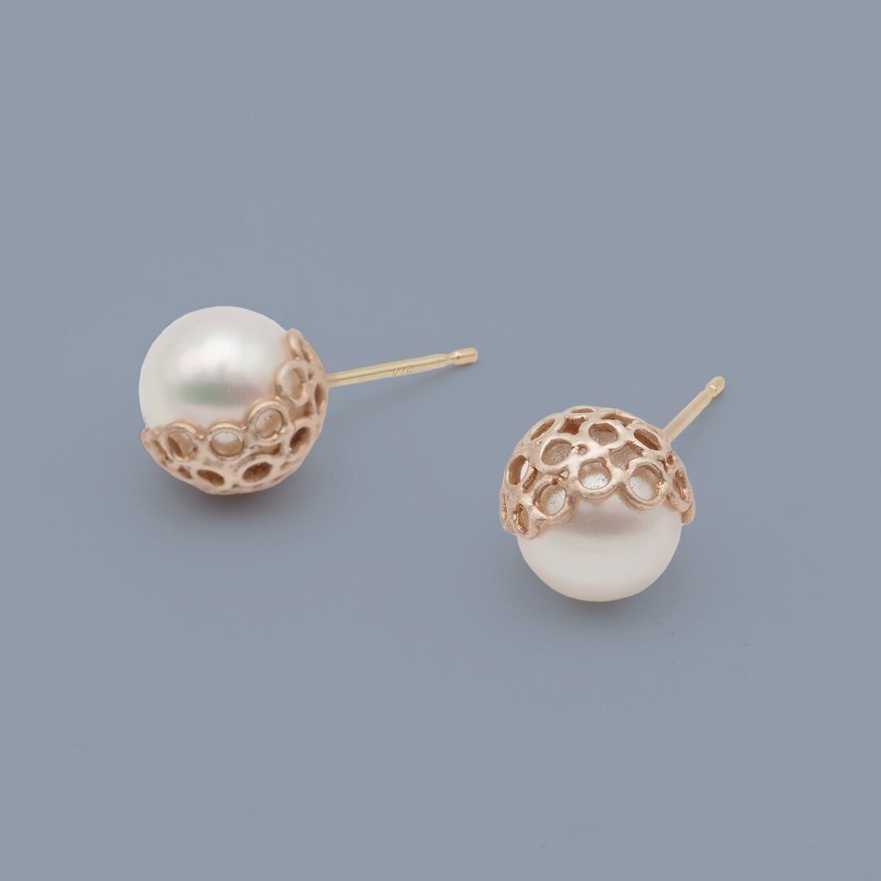 小さなアコヤパールをサークルモチーフで半分包み込んだシンプルなピアスです。